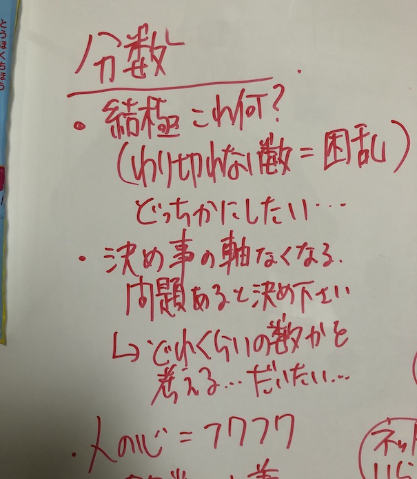 分数が苦手な子に、分数の計算を教えながら、分数が苦手な理由を聞いてみました。