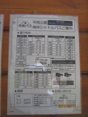 平岡梅公園からの バス時間2011年5月11日 16:48