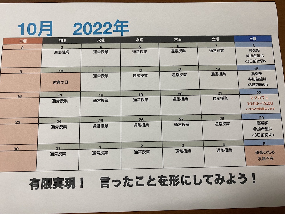 10月の予定表配布しています!